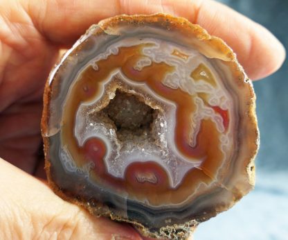 polierte Fläche ca. 6 x 5,5 cm rißfrei, sehr schöne Farben, tolle Druse im Zentrum